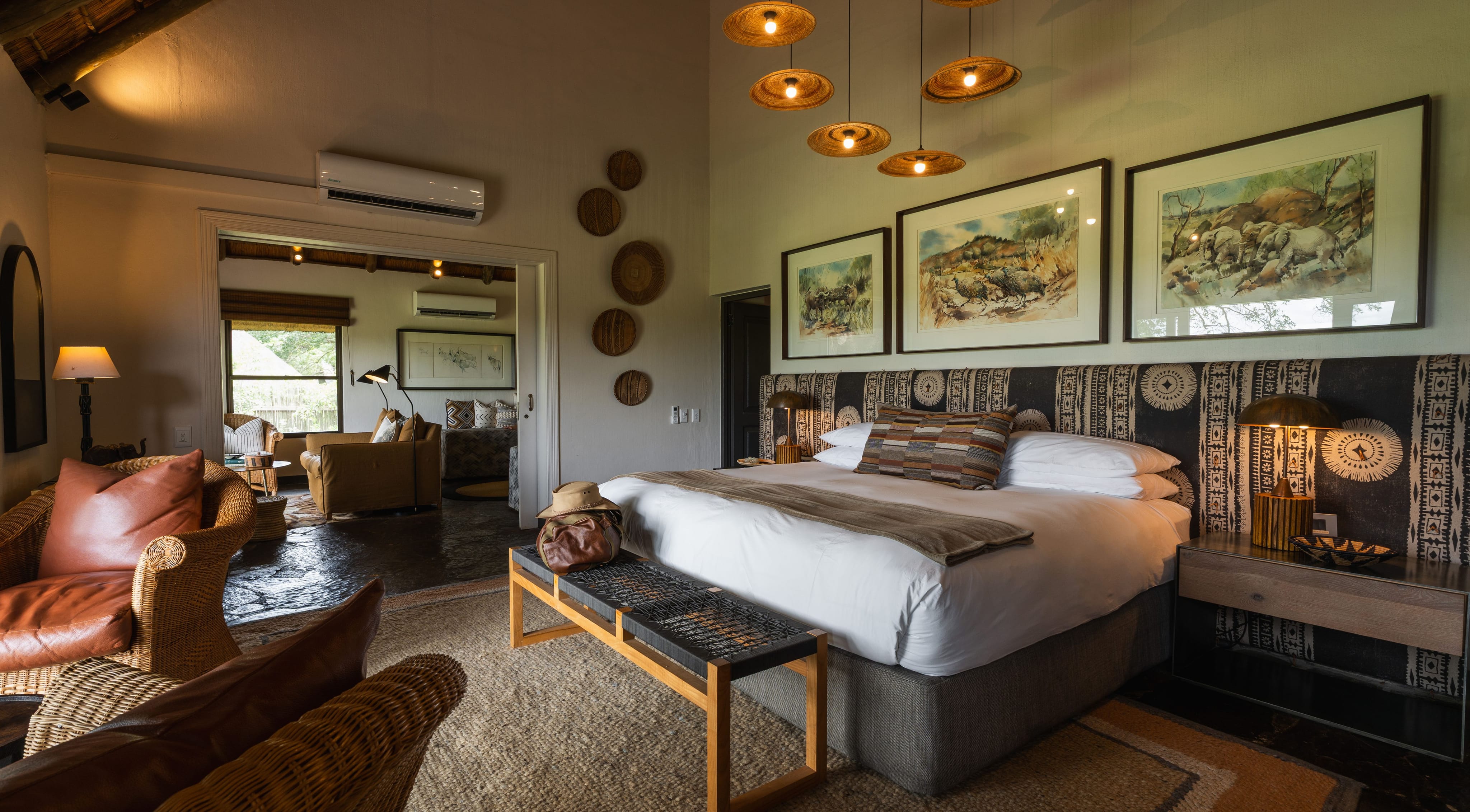 Designed in traditional rondawel-style with thatched roofs, with interiors that mimic elements of the outdoors, Sable Camp has a capacity for only twenty guests.