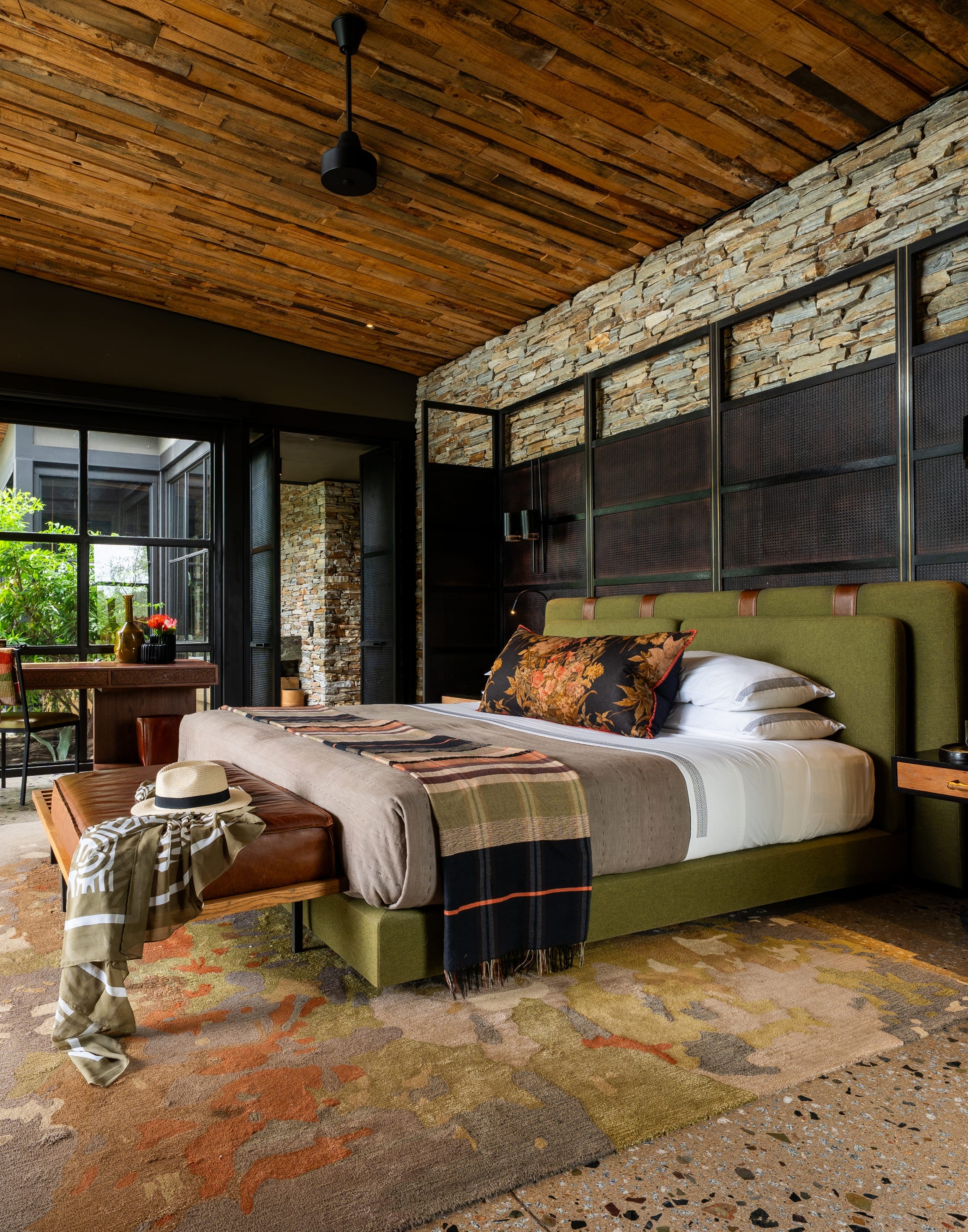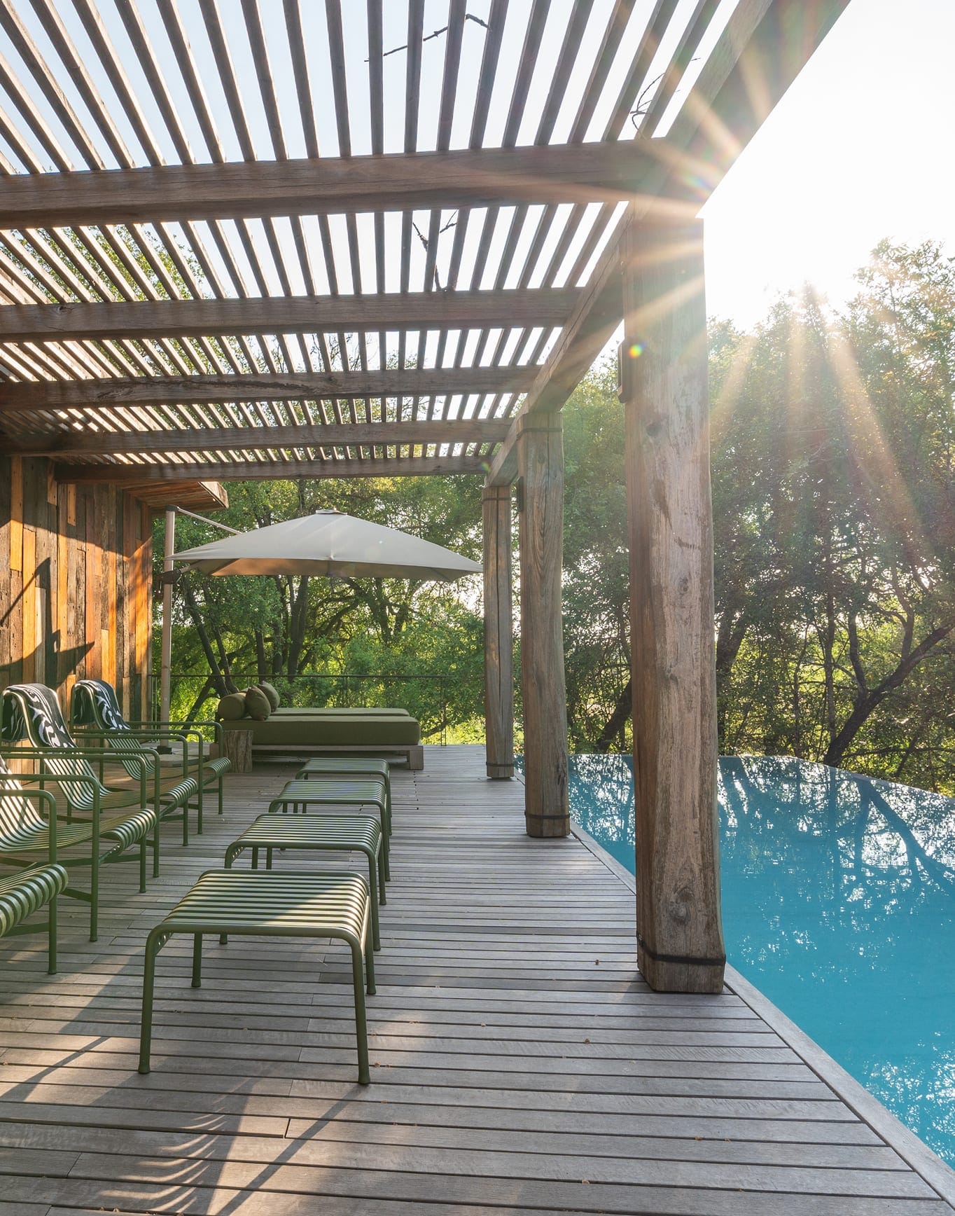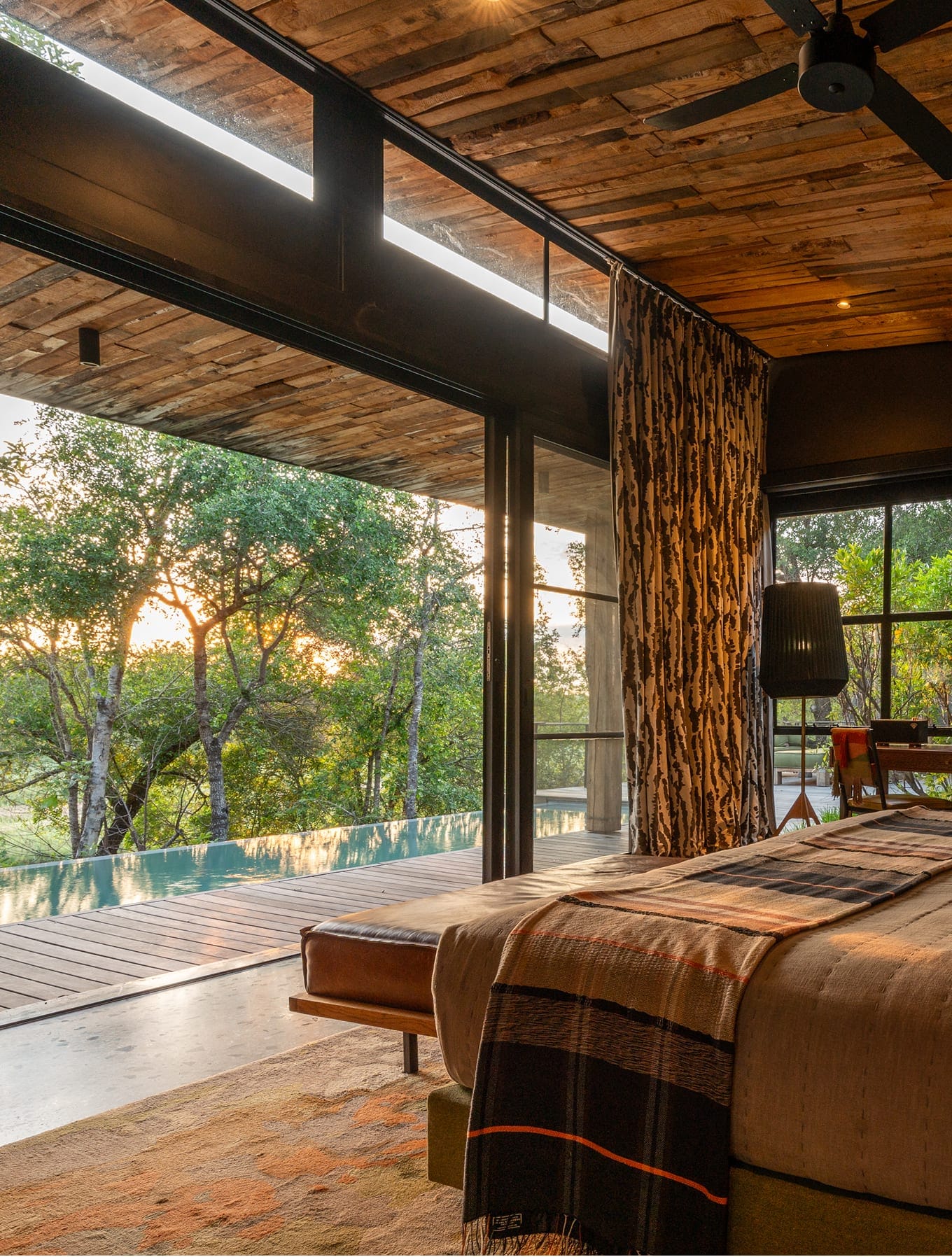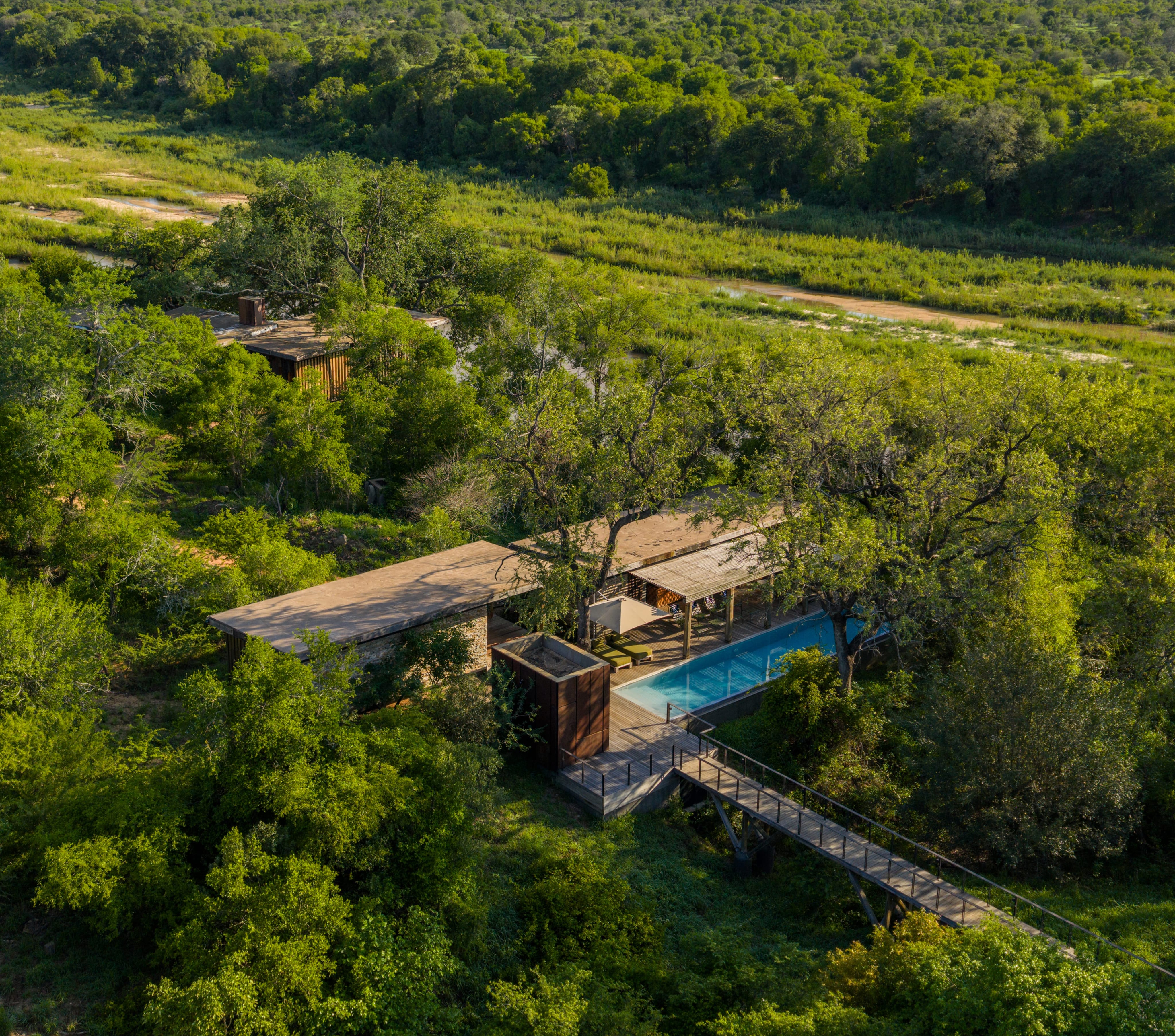 Strategically placed on the bend of the Sand River in the most exclusive quadrant of South Africa’s Sabi Sand region with sweeping water-rich views from every area, there are nine enormous, stilted hideaways, combining design with traditional safari elements that blend seamlessly with the landscape. Here there is an evident awareness of an accord between modernity and primal African aesthetics.