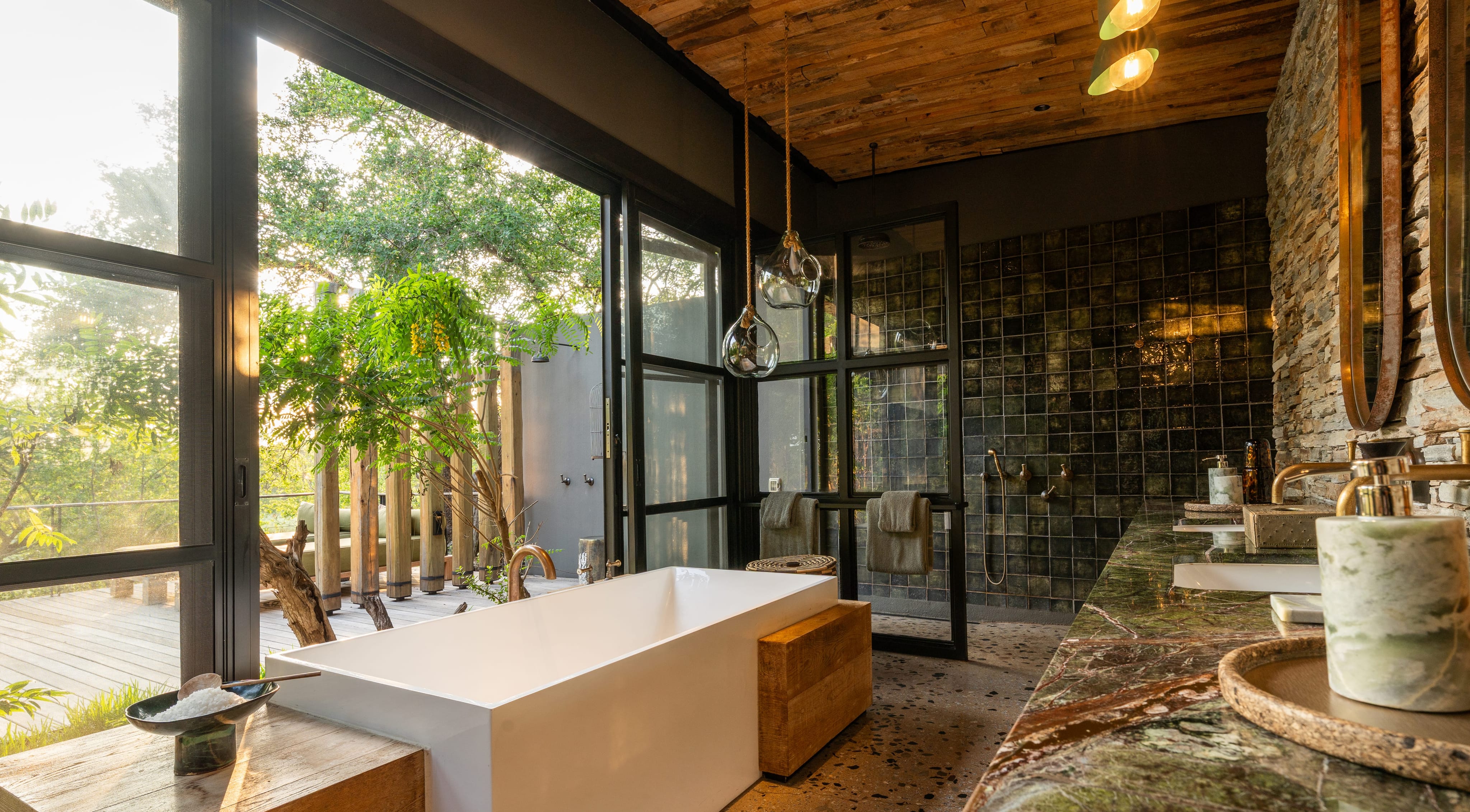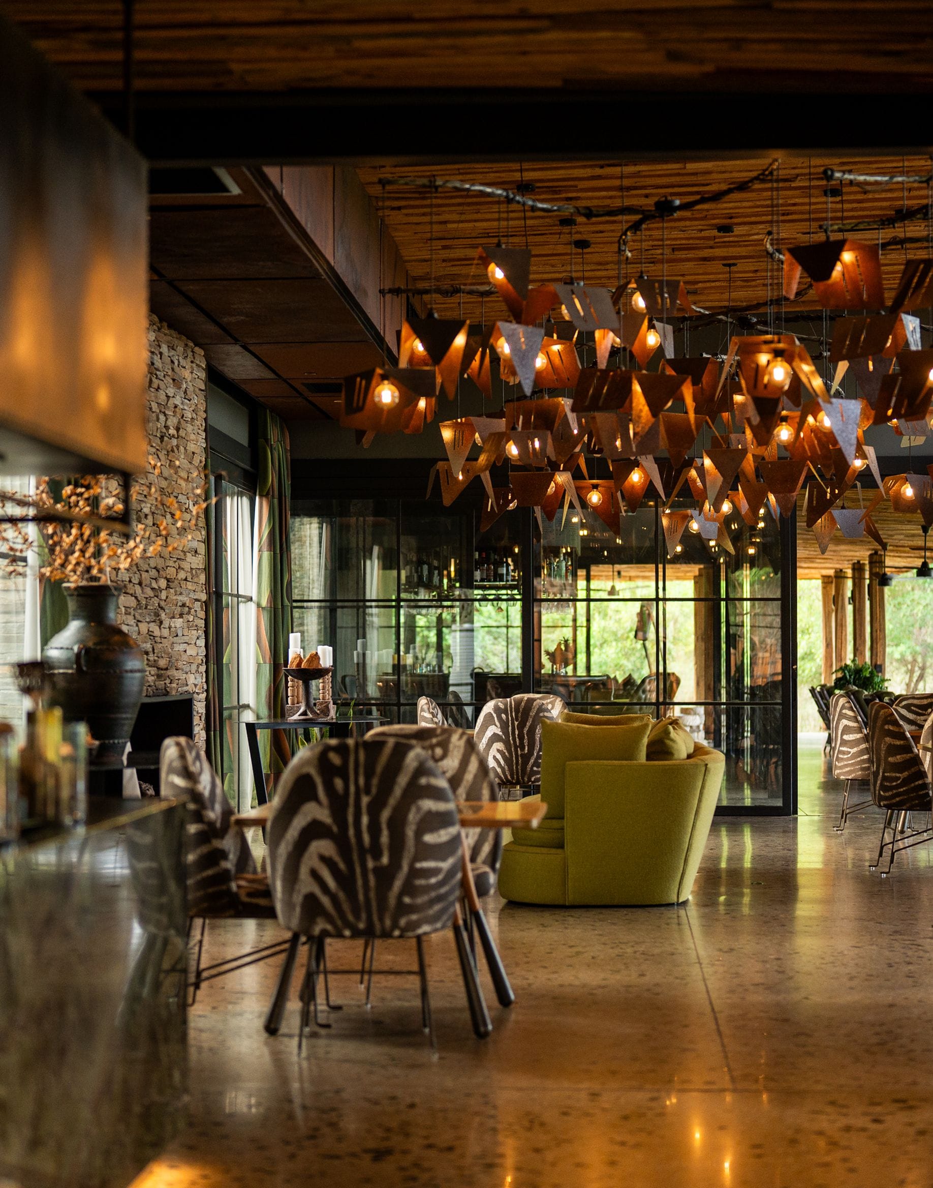 Dining is a central part of the experience, combining refined cuisine with the atmosphere of the African bush. Menus change daily and blend modern culinary techniques with local South African flavours, using fresh and seasonal ingredients.