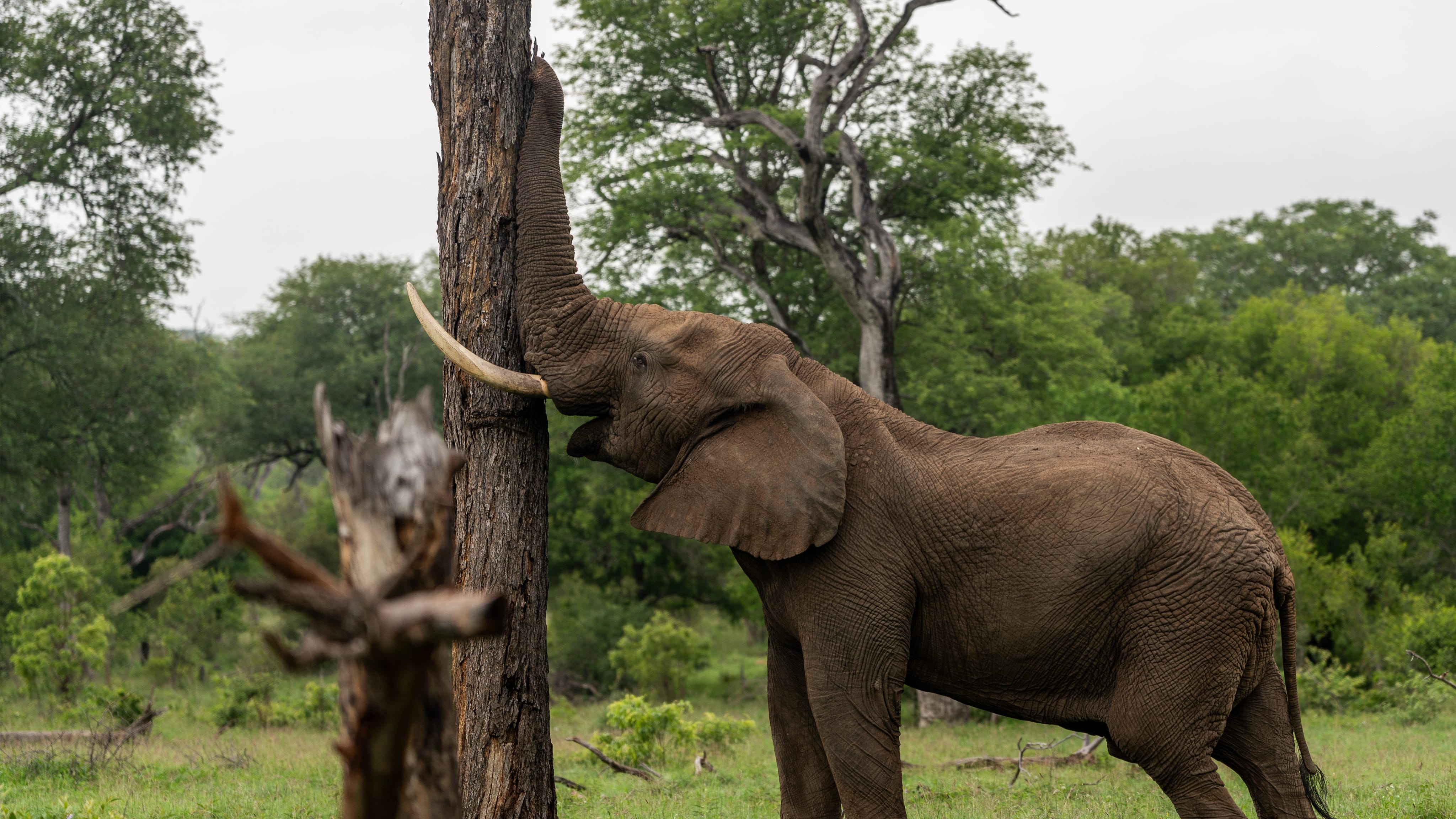 Dependence on such powerful browsers for seed dispersal can be dangerous for the parent tree. The sweet, fleshy and vitamin c-rich marula fruit so loved my elephants on MalaMala is a case in point. Elephants feed not only on the fruit but also on the foliage and bark, which may damage or even kill a tree. Only female marula trees bear fruit but evolution has not provided them with stronger branches than males. Perhaps the selective pressure of browsing may favour trees with good re-sprouting ability.